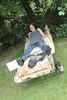 Hockend: Angelika Höger mit Hund von Andrea Köhn
